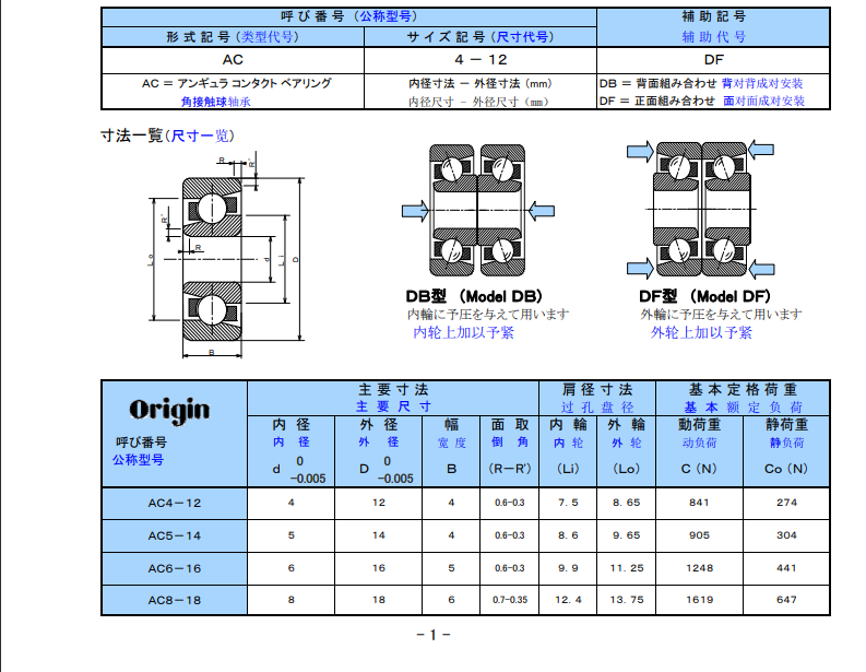 角接觸軸承是用于承受滾珠絲杠推力方向載荷的軸承,常用于機床等設(shè)備。常采用配對組合使用方式,有DB(背面組合)和DF(正面組合)。