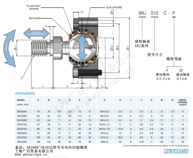 SRJ032C 日本HEPHAIST球鉸軸承 運用在超精密平臺 SRJ032C供應商
